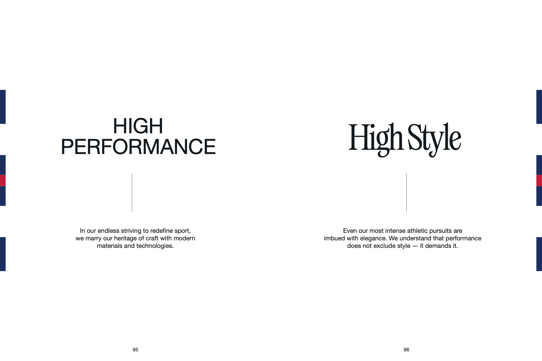 We made a brand book to refresh and reinvigorate the FILA brand. Our story refocuses FILA’s mission and messaging around Italian Sport Couture, crafted at the intersection of grit & grace.